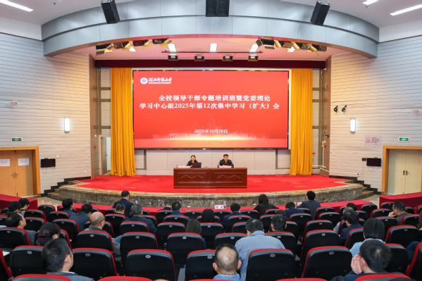 10月28日下午,学校在教育大楼报告厅举行全校领导干部专题培训班暨党委理论学习中心组2025年第12次集中学习(扩大)会,湖北省委党校副校长唐岚教授应邀来校作专题辅导报告。全体校领导,全校副处级及以上干部参加学习。报告会由校党委书记李宏主持。